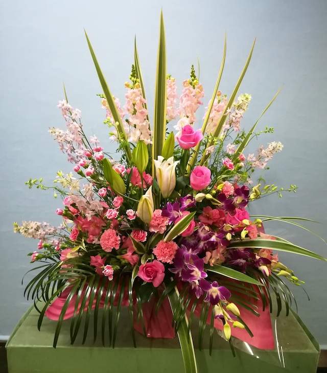 イメージサンプルです。 季節のお花で似合わせ作成させていただきます。 サイズ:H65・W30 ※ご購入時の注意 全国の皆様からのご注文、心よりお待ちしております。 尚、お届け先は、横浜市内となります。 横浜市外は配達エリア外となりますので、 ご了承下さいませ。