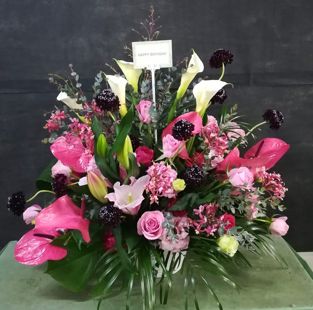 エレガントアレンジメントは、厳選された季節のお花を使用し、洗練された美しいデザインをお届けします。特別な日のギフトや普段のインテリアにぴったりです。