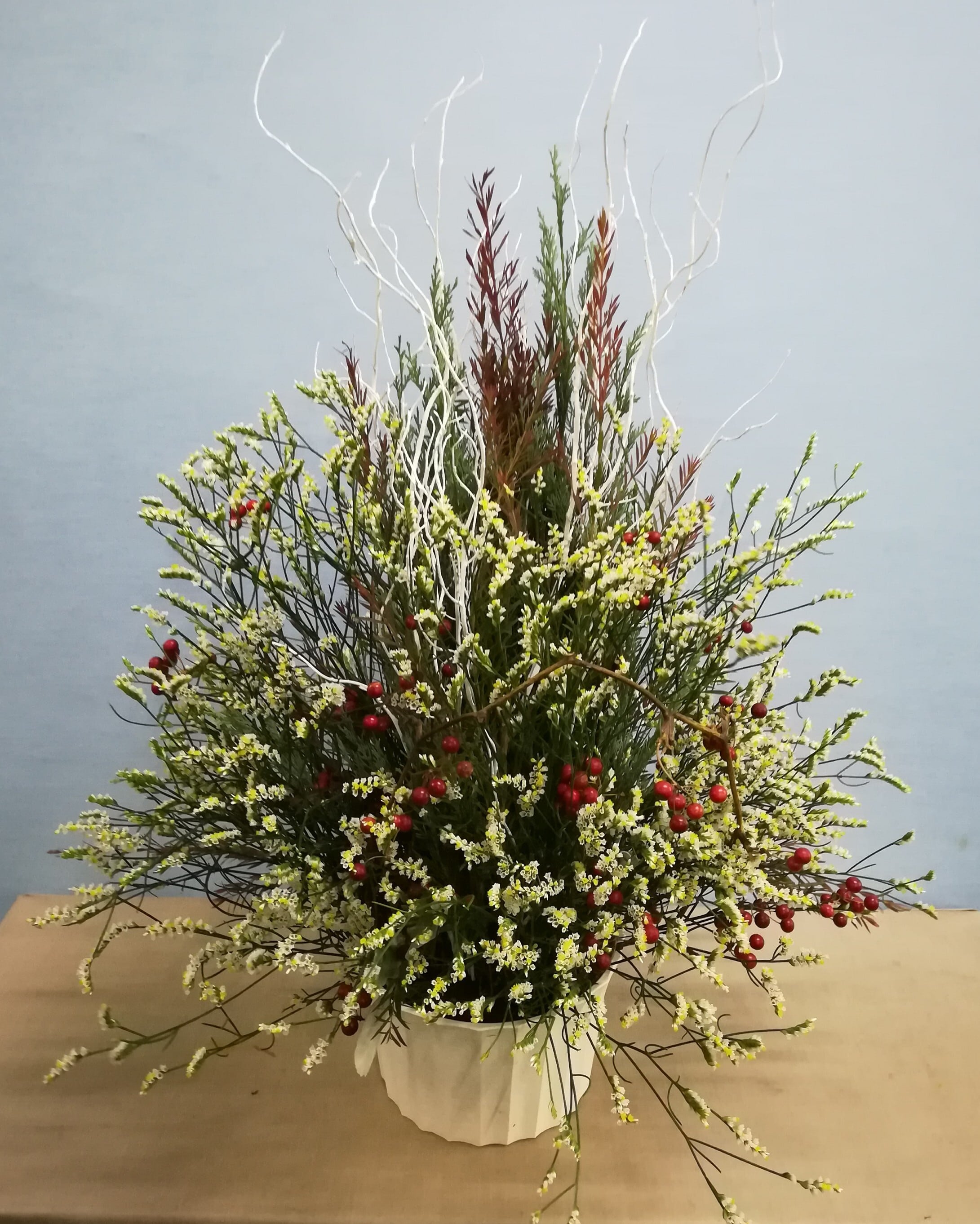クリスマス風アレンジメントは、鮮やかな赤と緑の花々が組み合わさり、 festive な雰囲気をもたらす特別なアレンジメントです。心を込めてお届けするこの作品は、大切なひと時を彩る一品です!