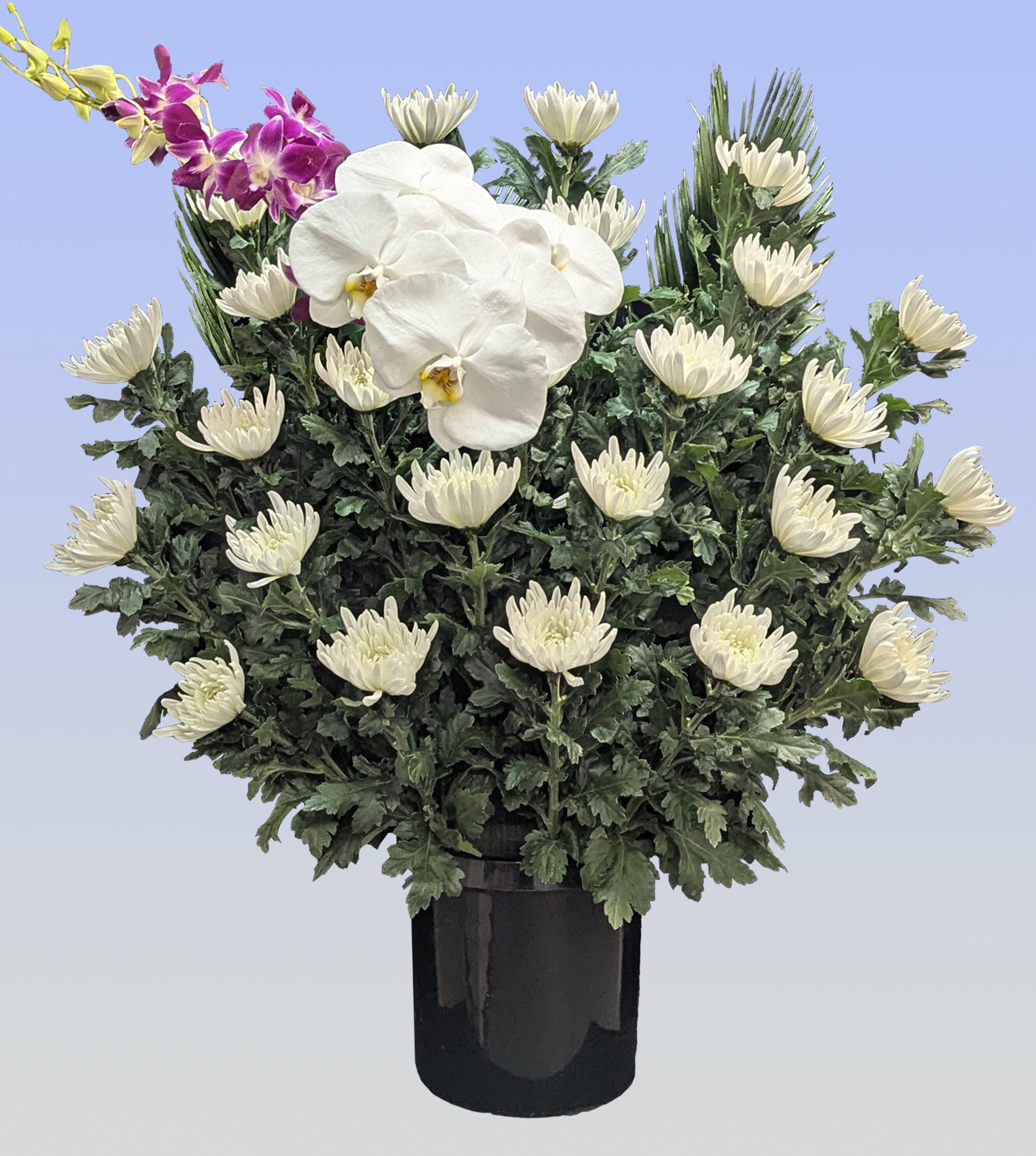 菊供花は、上品な菊が美しく調和し、故人を偲ぶ場にふさわしい雰囲気を演出する特別な供花です。心を込めてお届けするこの作品は、感謝の気持ちと共に大切な思い出を表現できる一品です!